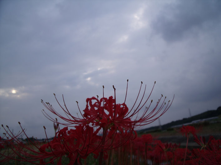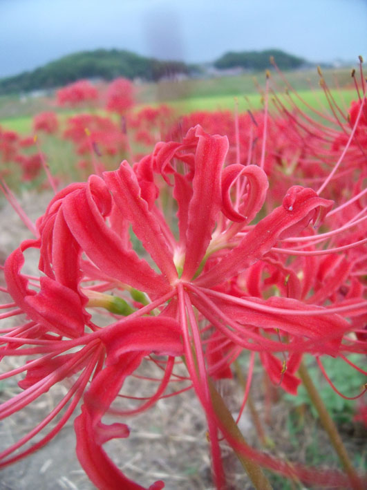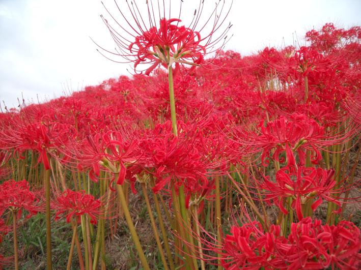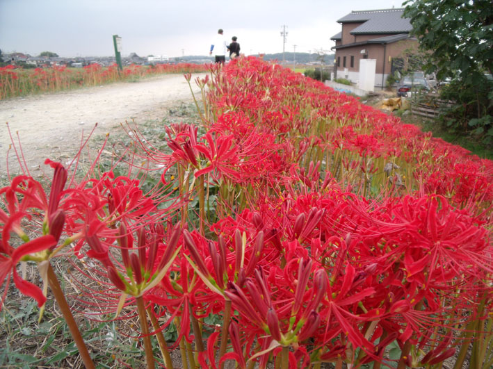 坂(畝?)の下から見上げた感じで。一面彼岸花がいいっすね。