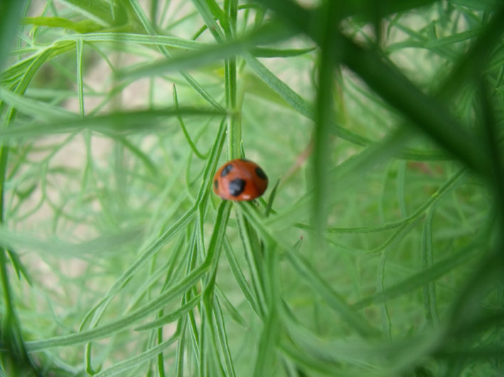 コスモス畑でてんとう虫発見。ちょっとピント合ってませんが(苦笑)